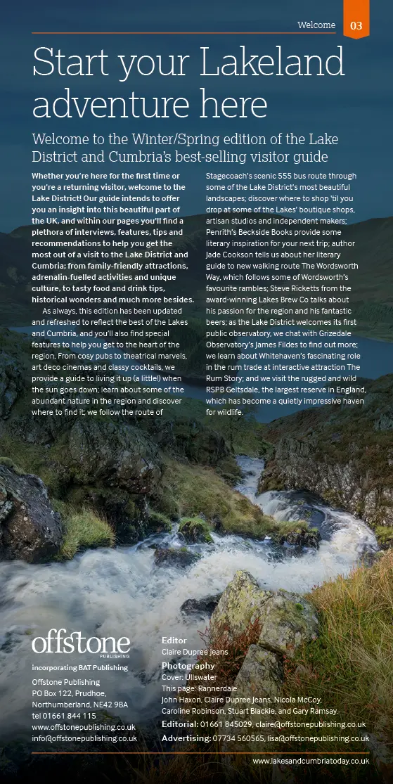 Welcome to the Winter/Spring edition of the Lake District and Cumbria’s best-selling visitor guide.